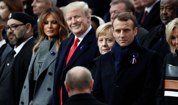 DONALD Trump has been pictured smiling warmly at Vladimir Putin as the Russia leader arrived in Paris to commemorate the end of WW1 with other world leaders.