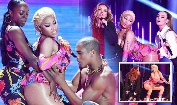 EMA Awards 2018 kicked off at the Bilbao Exhibition Centre in Spain last night with a performance by Nicki Minaj and Little Mix. Their sultry routine set pulses races as the woman gyrated on stage in skimpy ensembles.