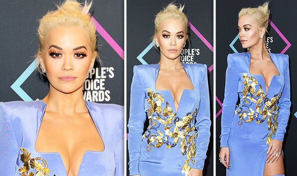 PEOPLE’S CHOICE AWARDS 2018 performer Rita Ora commanded attention in a perilously low-cut frock, which teased her ample cleavage and showed off her incredibly toned pins, thanks to a daring thigh-high split.