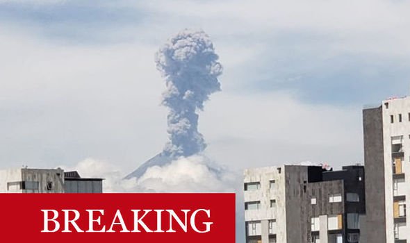 POPOCATÉPETL volcano has erupted in Mexico, sending a huge column of smoke several miles into the air.