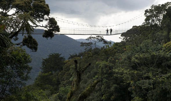 SUSPENDED 200ft above Rwanda’s forest floor, I felt on top of the world. The towering trees and dense jungle of the Nyungwe Forest National Park stretched out below me in all directions as I swayed on the walkway, at eye level with the monkeys and the birds.